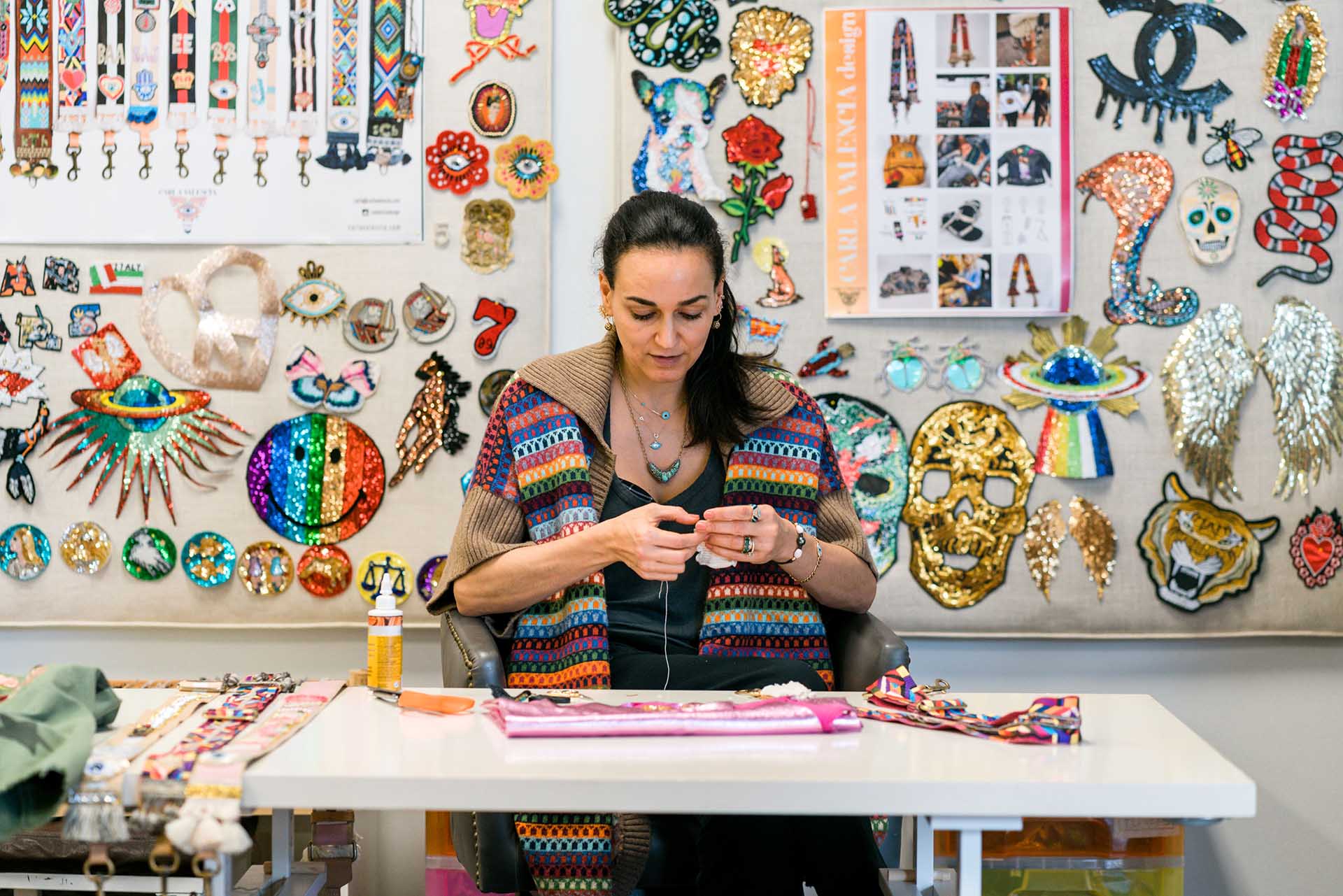 Carla Valencia Design is the manifestation of Carla Valencia’s creative dreams and family history. As a child, she learned how to sew at a young age sitting alongside her wildly artistic grandmother, Martha.Today, Carla uses the old-world embroidery techniques passed down by the women in her family to create modern designs using the symbols and icons that influence her. From evil eyes to hamsas to snakes and sacred hearts – flowers and Frida and the moon and stars – the ideas spill out throughneedle and thread, creating truly one-of-a-kind clothing and accessories meant to last forever.Her father Carlos was also heavily influenced by his mother Martha and is Carla’s partner in sewing crime.